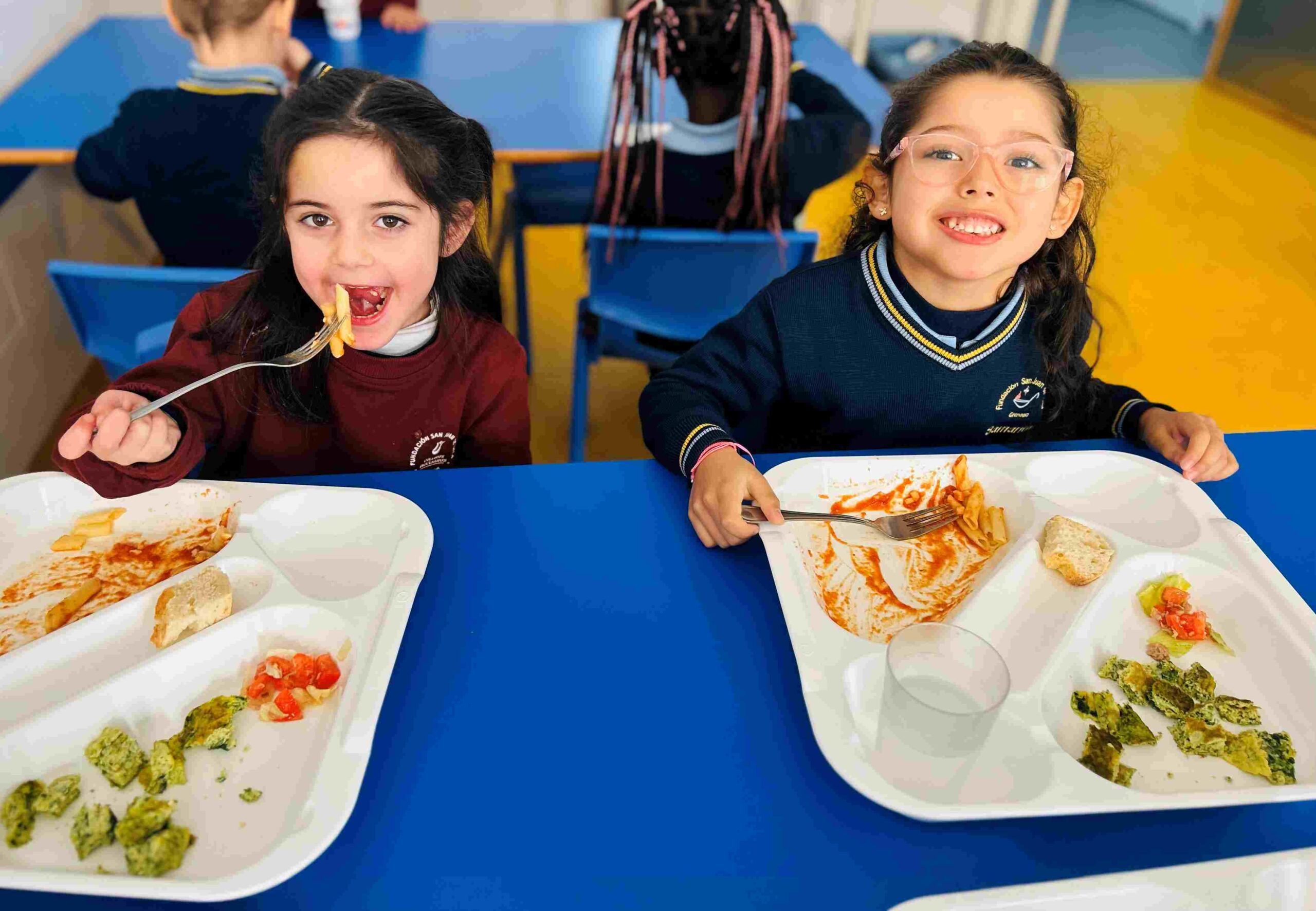 Servicio educativo en colaboración con Aramark, con cocina propia, menús equilibrados, hábitos saludables y acompañamiento en valores de convivencia.